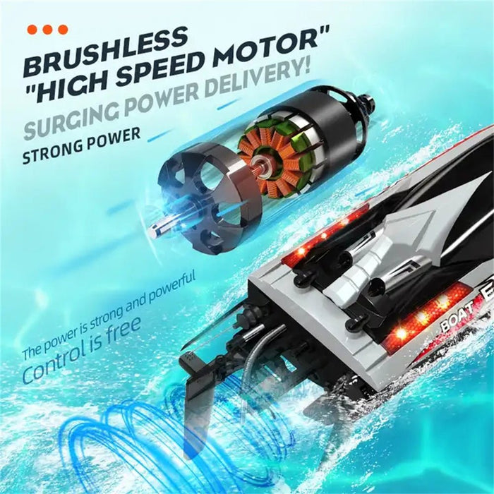 HXJRC HJ816 PRO RTR - 55 km/h 2,4G bezkomutátorový vysokorychlostní RC člun s převráceným resetem a LED světly - Vodotěsný elektrický závodní motorový člun pro jezera, bazény a nadšence na dálkové ovládání