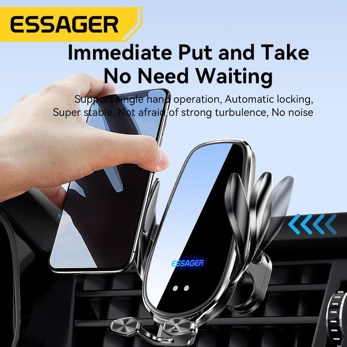 ESSAGER A4 Kabelloses KFZ-Ladegerät – 15 W, 10 W, 7,5 W, 5 W, Klemmhalterung für Lüftungsschlitze, kompatibel mit iPhone 13, 14, 14 Pro, 14Pro Max, Xiaomi 13pro, Huawei Mate50 – ideal für sicheres und effizientes Laden im Auto