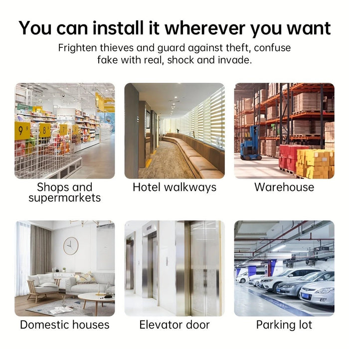 Ez az ABS műanyag vakkamera pirosan villogó LED-del kiváló kiegészítője a könnyen felszerelhető biztonságnak, és pontosan úgy néz ki, mint egy igazi kamera. nehéz megmondani a különbséget ez és a valódi CCTV kamera között.