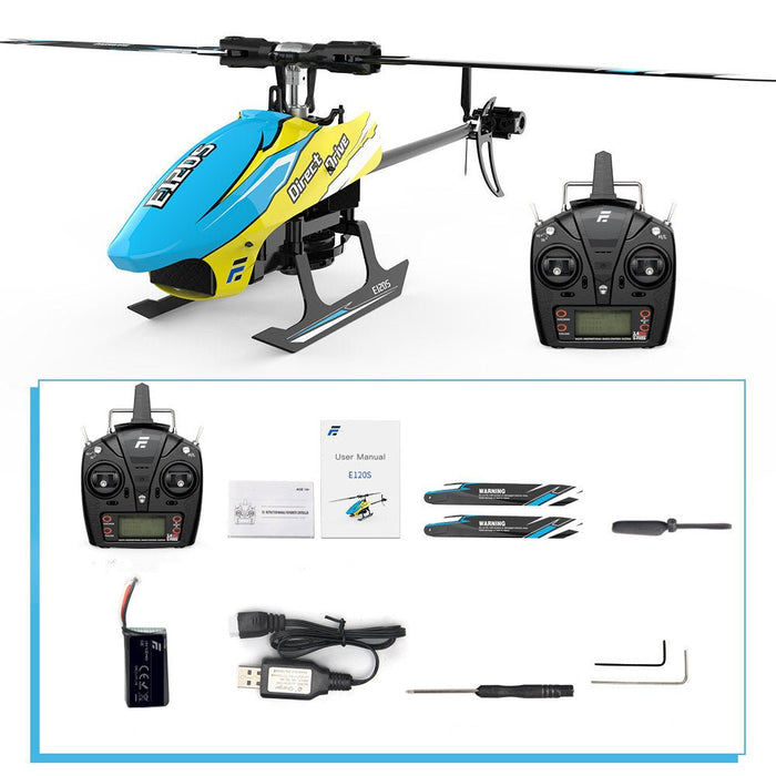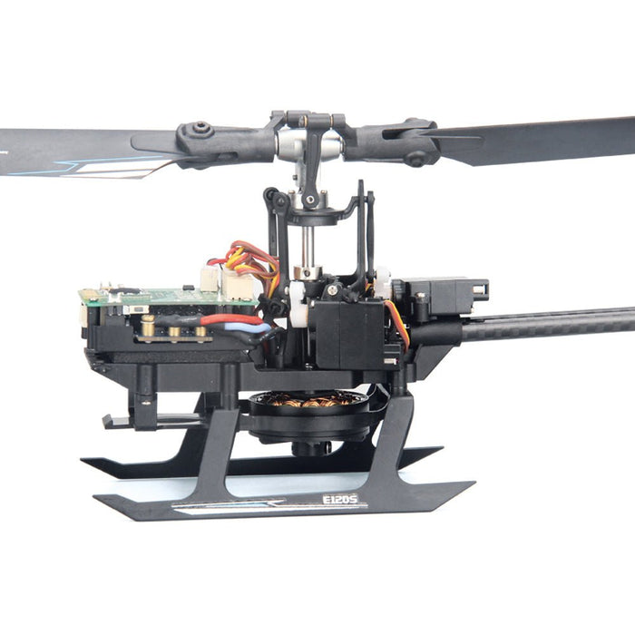 A 2g fém digitális kormányművel rendelkező E120S nagy nyomatékot, nagy pontosságot és pontos középső visszatérést kínál a precíz repülésirányítás érdekében. A 6 tengelyes giroszkóp stabil, gyors és pontos repülési hozzáállást biztosít, így különösen alkalmas kezdőknek. A 2,4 GHz-es kommunikációs protokollnak köszönhetően a helikopter kompatibilis a DSMX, DSM2, PPM és S-BUS szabványú vevőkkel.