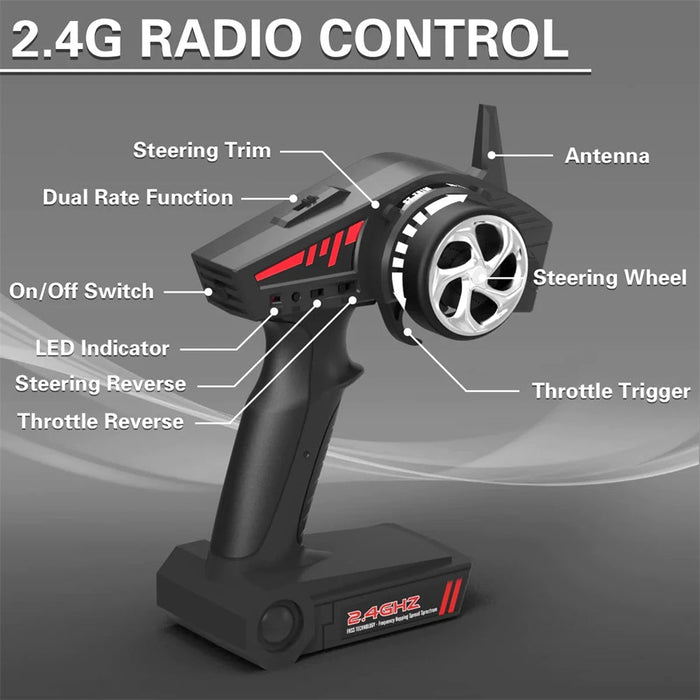 A 2218 2600KV-es kefe nélküli vízhűtéses motorral és egy 20A-es kefe nélküli vízhűtéses ESC-vel felszerelve ez az RC hajó lenyűgöző, 60 km/h-s végsebességet ér el. A 2,4 GHz-es adó precíz vezérlést és akár 100 méteres távolságot biztosít, így biztosítva a szórakoztató és izgalmas versenyzési élményt családjával és barátaival.