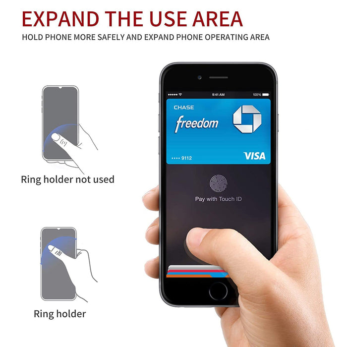 Uchwyt pierścieniowy telefonu komórkowego zapewnia bezpieczne trzymanie urządzenia. Zapewnia pewny chwyt, chroniąc telefon przed przypadkowymi upadkami. Zmniejsza to również ryzyko kradzieży telefonu, zwłaszcza podczas jego obsługi lub robienia zachwycających zdjęć.
