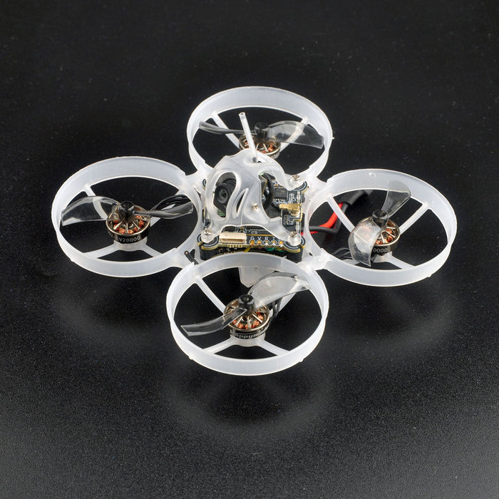 A estrutura de 75 mm do drone é construída com materiais duráveis que podem resistir a colisões. As hélices de pás Gemfan 1610-2 são feitas de material PC e fornecem elevação e impulso ideais. Em caso de danos, uma capota sobressalente, ferramenta de desmontagem da hélice e uma chave de fenda estão incluídas no pacote para facilitar a manutenção.